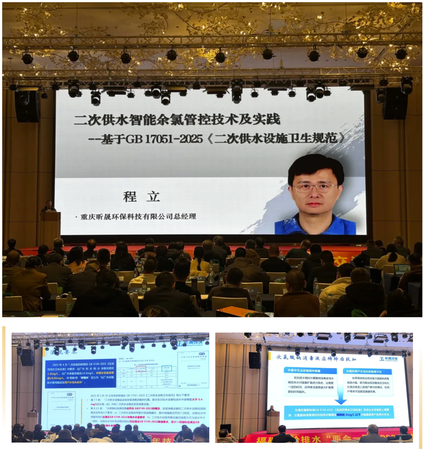 我司總經理程立先生受邀在本次學術交流會上發表了主題為“二次供水智能余氯管控技術及實踐——基于GB 17051-2025《二次供水設施衛生規范》”的技術報告,重點分析了政策規范對水質管控的要求,結合二次供水水質現狀和實際情況分享了二供智能余氯管控技術的特殊性要求。會后與行業內專家、學者和技術人員等對二供余氯管控這項新技術進行了深入的交流與探討。